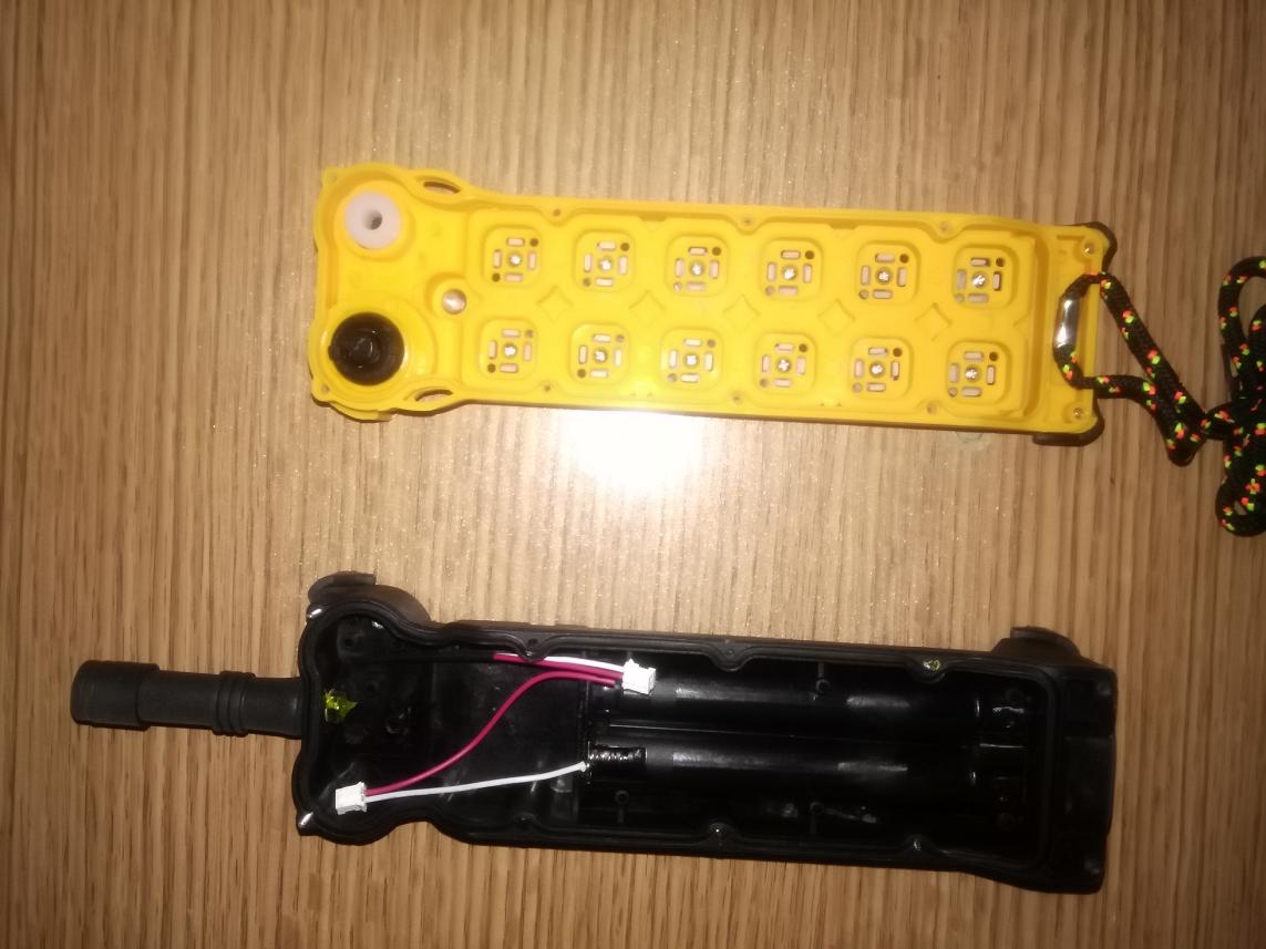 發(fā)射器外殼尺寸:18.6x6.1x5.1厘米,含天線、天線連接線、紅色急停鍵、安全鑰匙開關、10顆按鍵罩、上殼體、下殼體、電池蓋、掛繩。裝2節(jié)5號堿性電池。