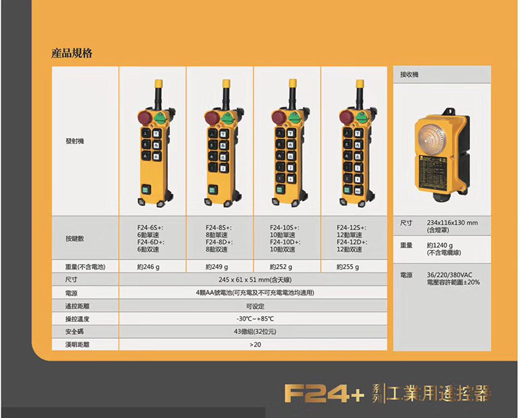 臺灣禹鼎telecrane LEE F24-10S+ 十路起重機無線遙控器 10鍵天車行車無線控制器。