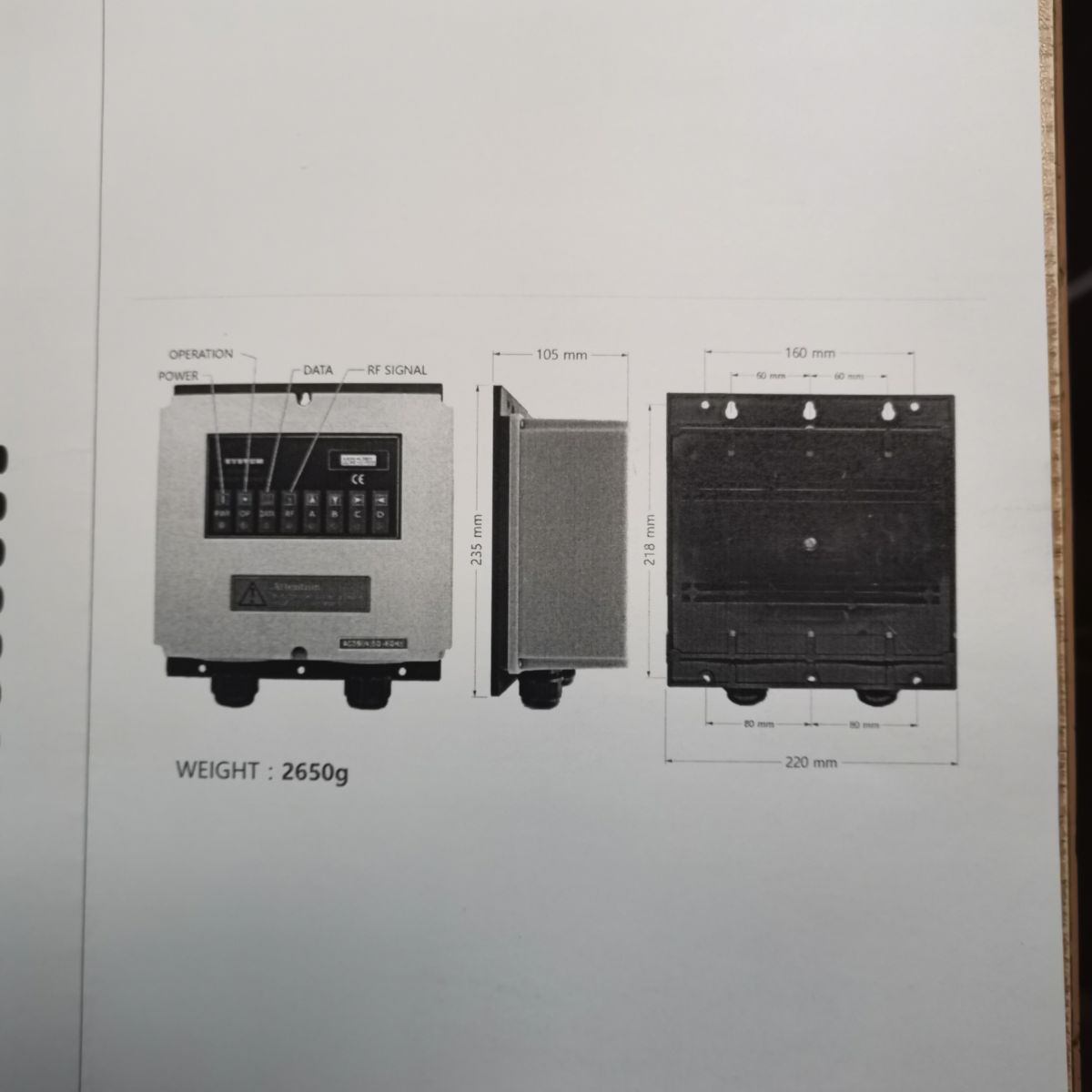 接收機(jī)上下長度235mm,左右寬度220mm,厚度105mm,含電纜重量2000g。