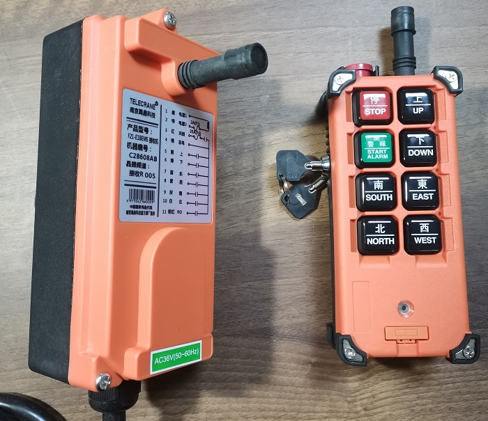 禹鼎新品F21-E1B EMS鑰匙款急停款電動(dòng)葫蘆遙控器,針對(duì)市場安檢需求和老款F21-E1B遙控器手柄的磁性鑰匙經(jīng)常脫落、丟失,