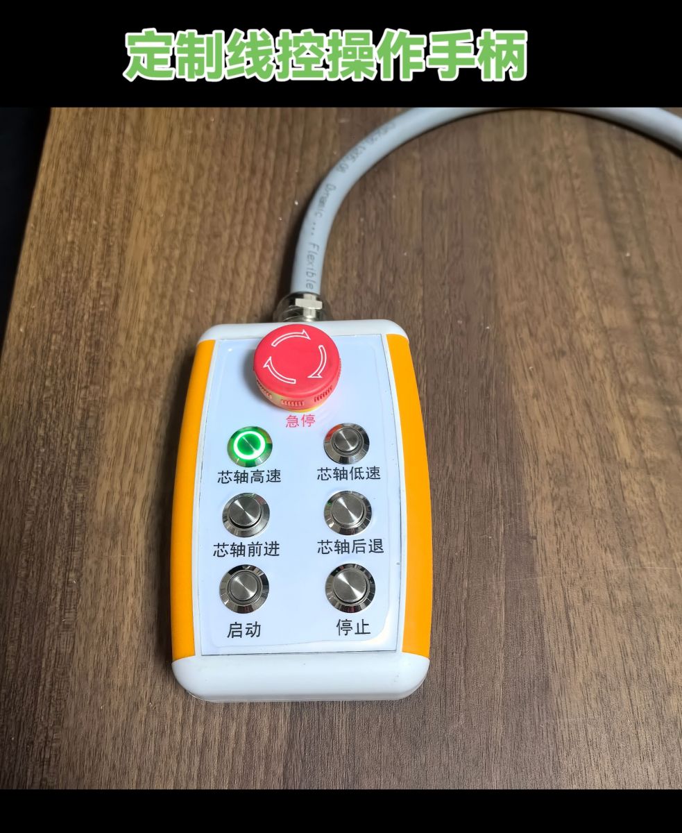 鹽城瑞久機(jī)電科技有限公司可以為客戶(hù)定制各種工業(yè)設(shè)備線控操作手柄,拉線手柄,元器件操作形式、輸出形式、都可以定制。如點(diǎn)動(dòng)按鈕、自鎖按鈕、兩檔旋鈕、三檔旋鈕、多檔旋鈕、船型開(kāi)關(guān)、翹板開(kāi)關(guān)、可調(diào)電位器、編碼器、帶燈按鈕、反饋指示燈等都可以制作哦。可以根據(jù)要求配備電纜。手柄面板可以根據(jù)要求做普通PP貼紙面板、PVC面板、不銹鋼面板。