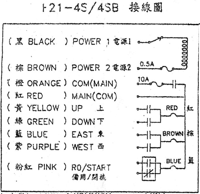 F21-4S四鍵電動葫蘆遙控器輸出線路圖