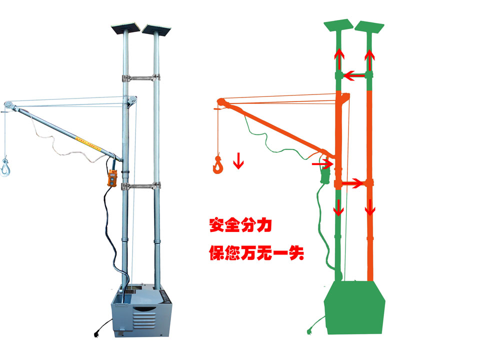 Applicable to the supporting surface (indoor) places up and down lifting materials, and is used in combination with the attached rack outdoor project, to achieve outdoor effect. Can also be used in combination with a large engineering scaffold.